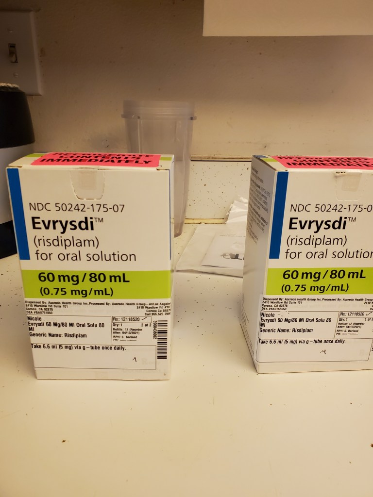 I learned about Evrysdi after an invitation to an information webinar hosted by the company. It was an oral medication taken daily. I was relieved. That seemed so much more doable compared to the spinal injections. Moreover, listed side effects were very limited (at the time at least). The only real bad issue that seemed remotely likely that could be bad enough to force me to quit was the chance of kidney issues. My confidence increased again at the prospect of being treated. I went for it.