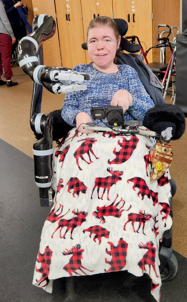 I became aware of the Jaco robotic arm by Kinova when I was much younger and it was still in the trial phase. I saw demos at MDA summer camp and a technology conference over the following years. The robotic arm is a nifty device that mounts on the side of the wheelchair and is controlled by your existing joystick. It can help with everything from opening doors and pushing crosswalk buttons, to eating and drinking. You can even use it to cook!